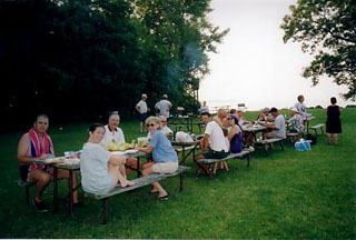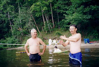 The rest of the day was devoted to swimming, a campfire, and music and singing. Bill Brock brought a guitar, harmonica, and a bag of kazoos, Bob his fiddle, and Carol a penny whistle.