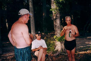 However, my self-esteem was badly damaged by the Vermont State Police at Burton Island State Park. After a thorough inspection it was noted that I was missing a required second fire extinguisher. Here I thought I was in good shape safety wise and suddenly I'm in violation. I heard Bill and Siobhan debate whether or not they would get a second one and I'm not sure if they ever decided one way or the other. Boy, was it hot while we were there. Everyone decided to go ashore in the shade to cook dinner and I thought I could see some table maneuvering by Frank and Bill Brock to get a table level for cooking. And I thought my Bill was a stickler for detail !!! I heard lots of laughter and some new liquids in bottles ( one didn't even have a label ) were shared with the group by Hank.