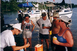 Bill thought it would be a good idea to put my new table in the sand and water for a party ashore. Table and boat agree: Bill needs to have his head examined.